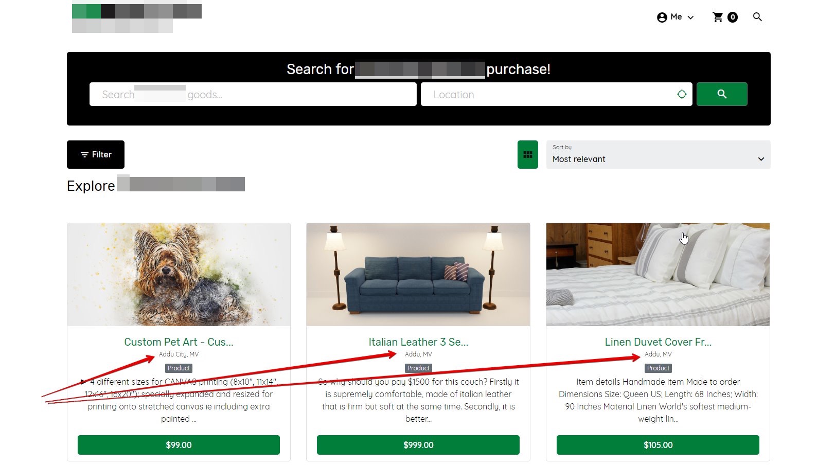 We also configured geo-coding for sellers and their products so based on their address filled in the profile we retrieve coordinates for further calculations.