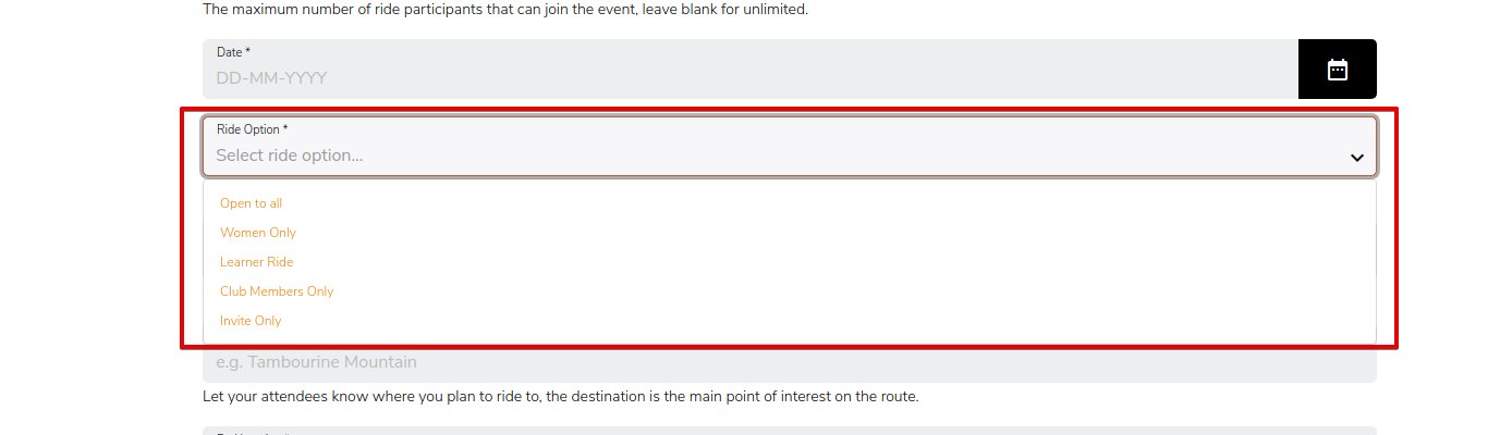 Configuration Example - Updated Porky tenant to user Rider preference based filtering. This new option shows up in search and on the ride detail pages. It allows for users to create events and set a preference for the sort of event they are creating.