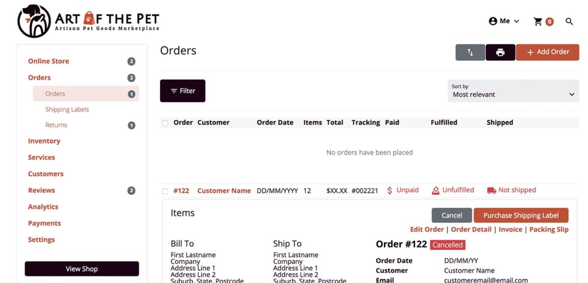 As a seller I can view a list of orders for my profile and view, add, edit and print orders.